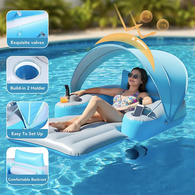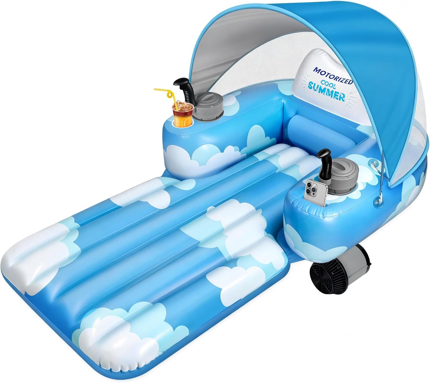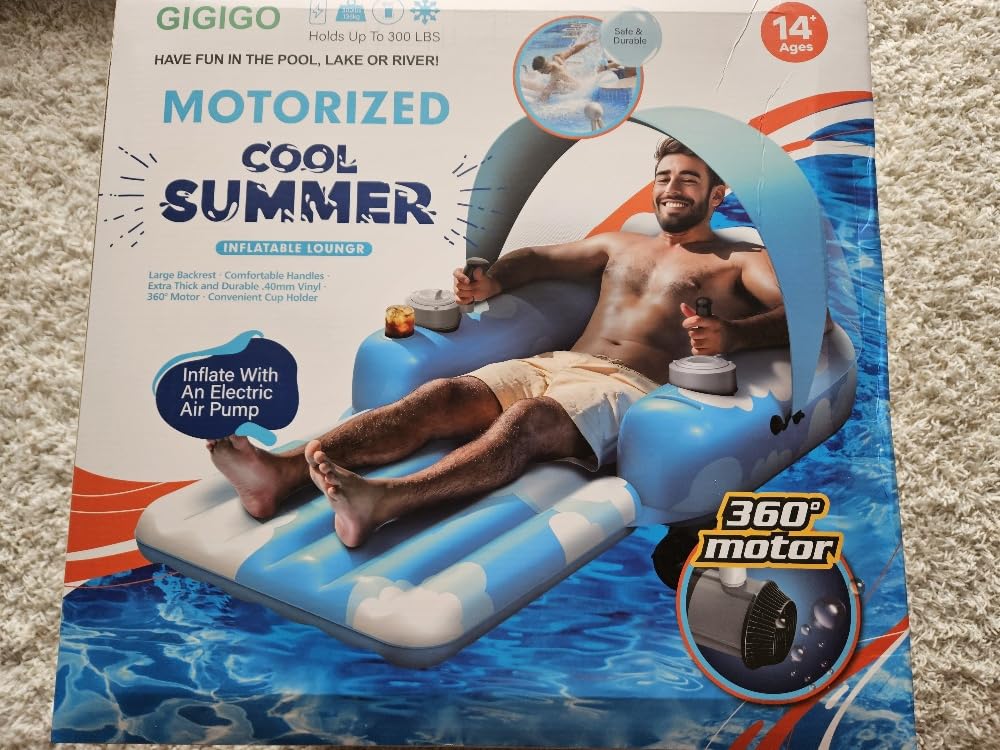 This pool float is awesome! The motor works well and makes it really fun to move around the pool without any effort. The canopy is a great addition—it provides good shade and makes it perfect for relaxing on sunny days. It feels sturdy, comfortable, and well-made. Definitely a great purchase for anyone looking to upgrade their pool experience!